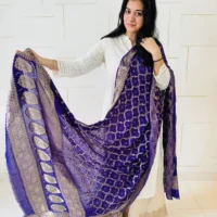 Bandhani Dola Silk Unstitched Suit Set for Women | Dola Silk Kurta Fabric | Contrast Bandhani Dupatta | Matching Pant Fabric | Festive & Wedding Wear