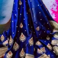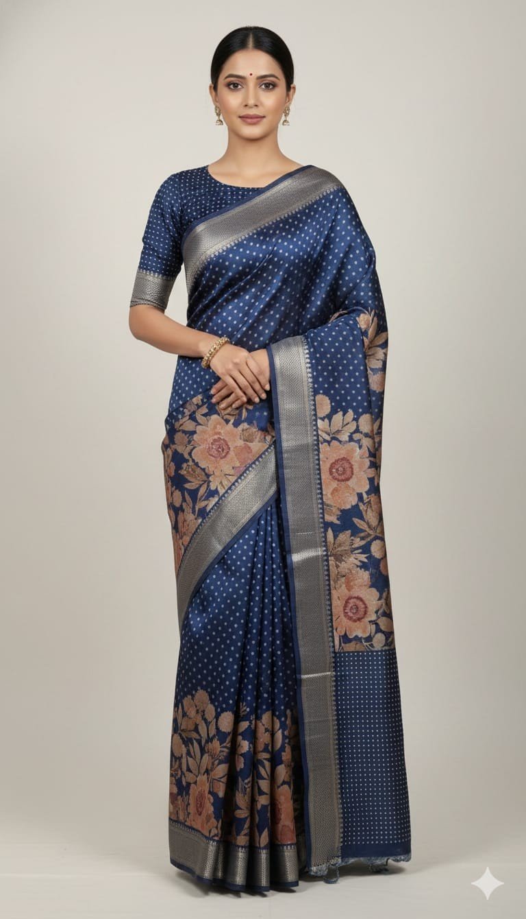 Premium Dola Silk Saree with Elegant Gold Foil Motifs, Rich Woven Border and Traditional Pallu for Festive Wear