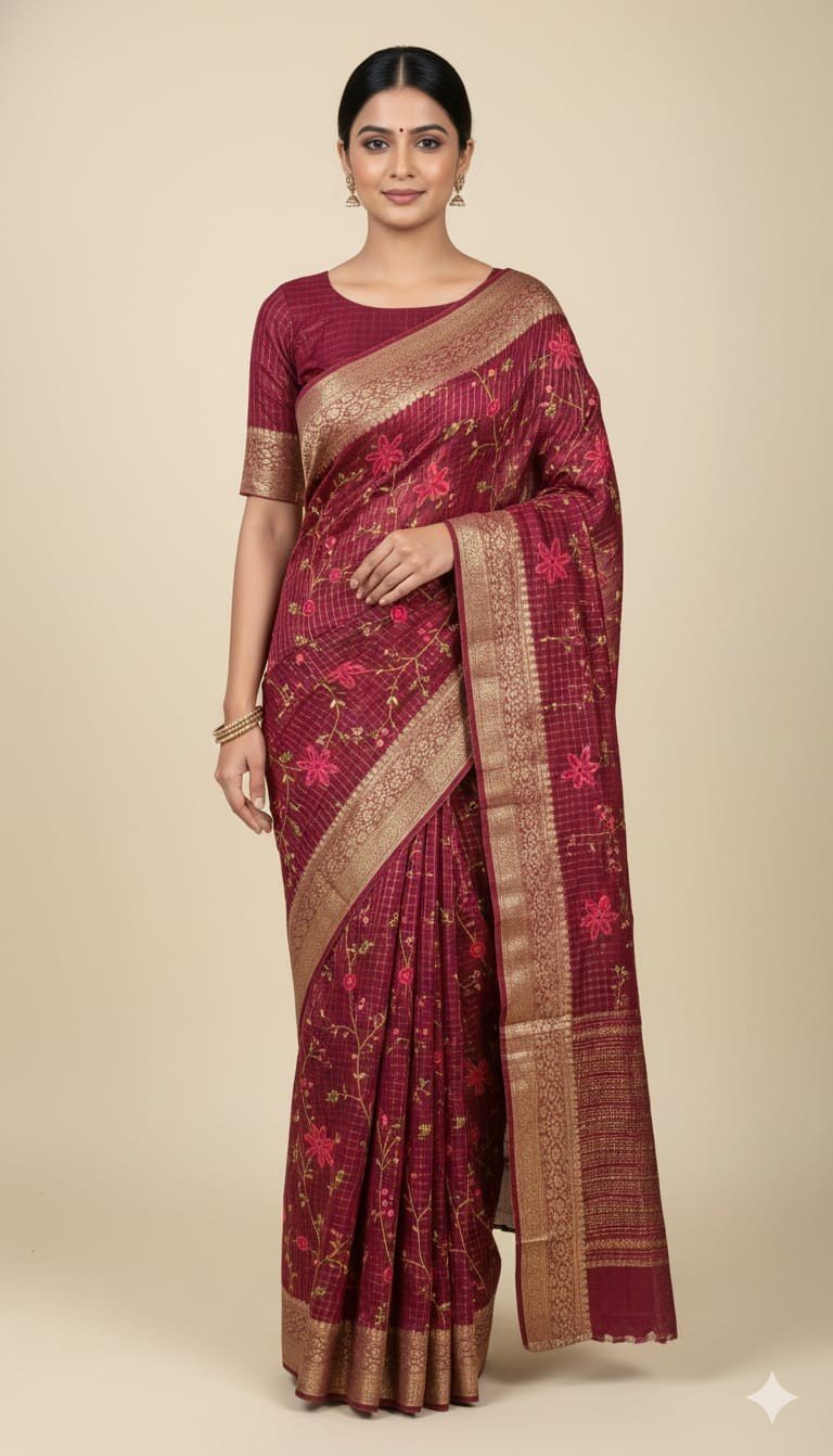 Premium Dola Silk Phulkari Work Saree with Handcrafted Floral Embroidery, Rich Border and Tassel Pallu Elegant Ethnic Wear