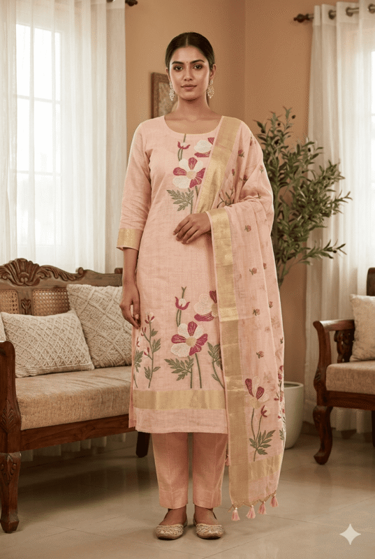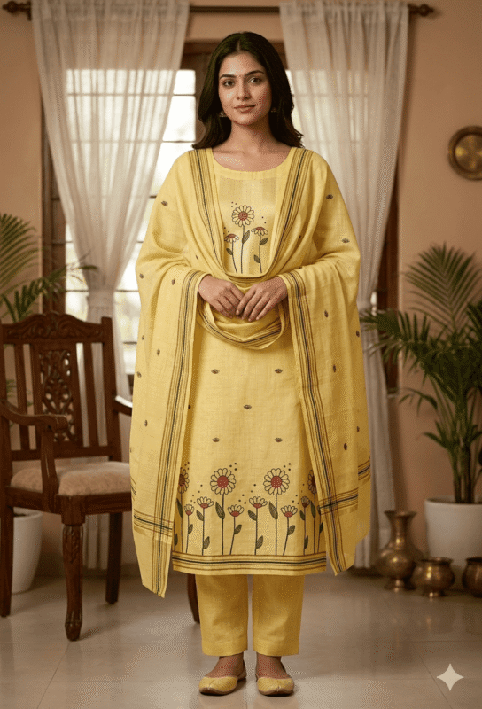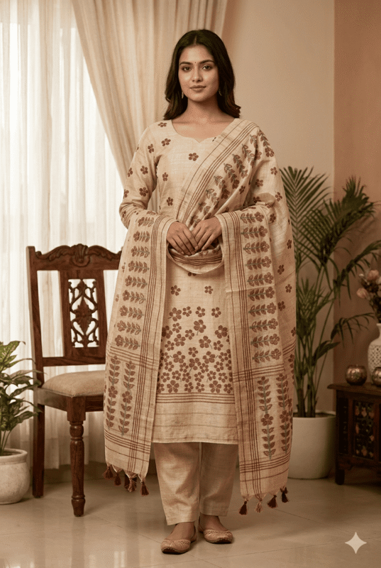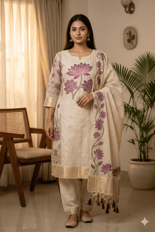 Elegant Jamdani Cotton Suit with Dupatta & Cotton Bottom – Premium 3 Piece Set