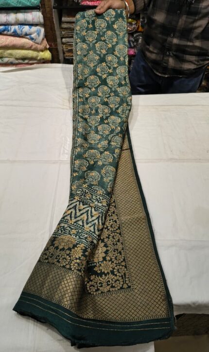 Premium Dola Silk Printed Dupatta | Elegant Green & Gold Ethnic Dupatta with Traditional Floral Design