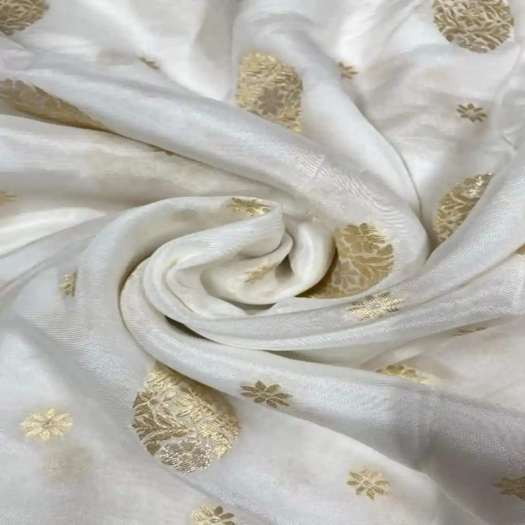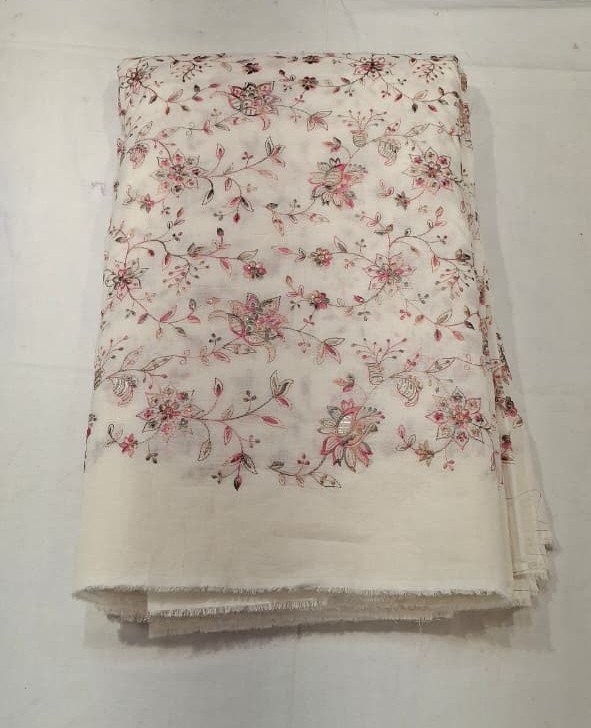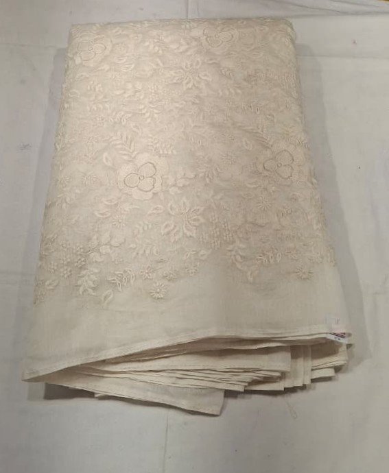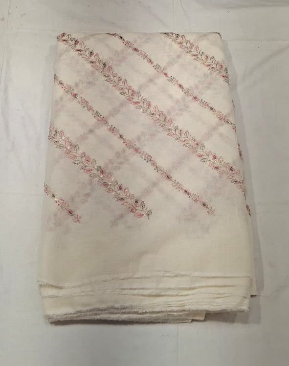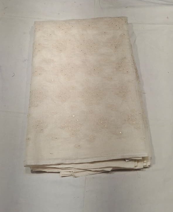Cream Chanderi Cotton Embroidery Fabric Lightweight Premium Ethnic Dress Material