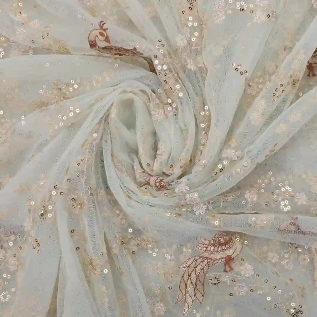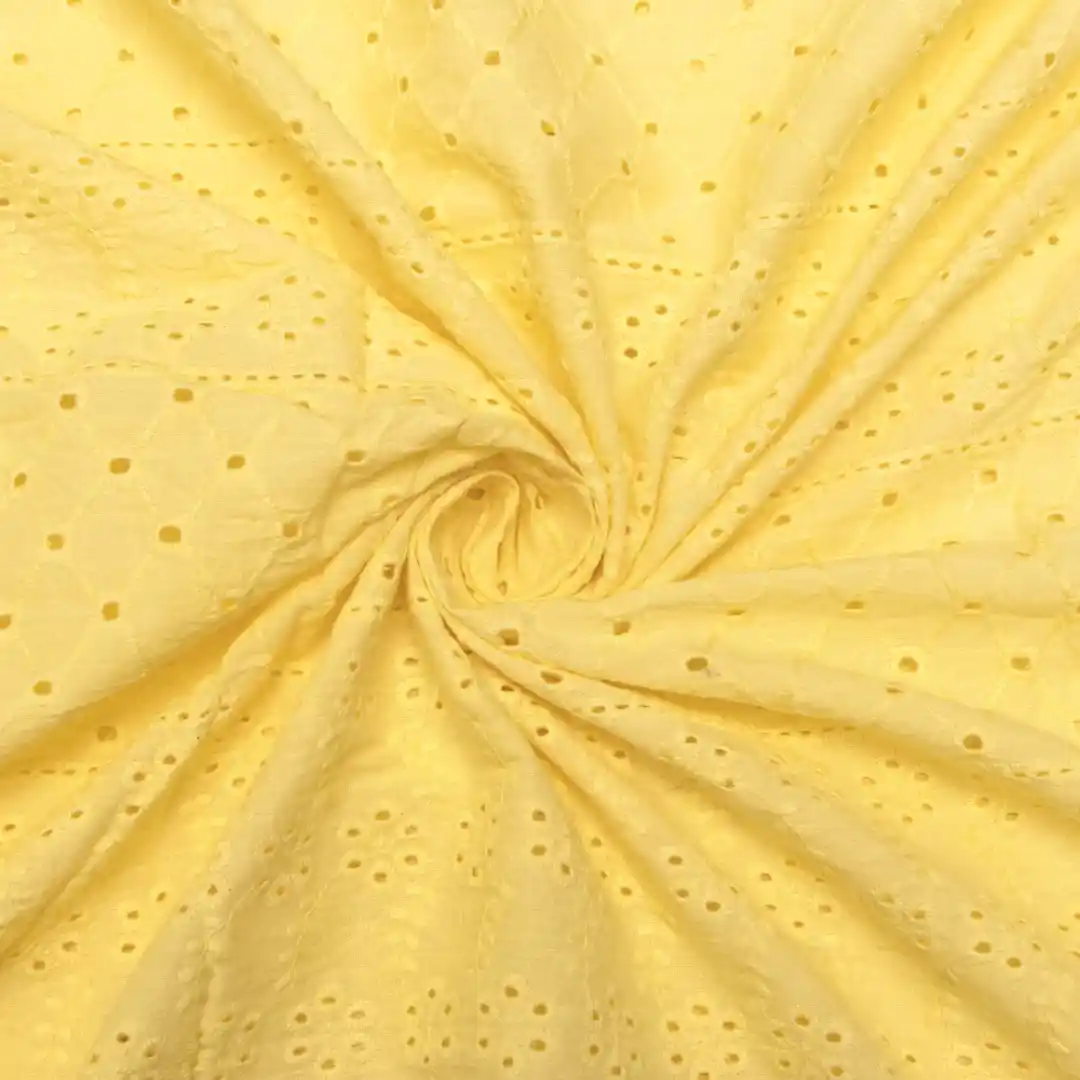 Mul Cotton Embroidery Fabric with Leaf Design Soft Lightweight Dress Material