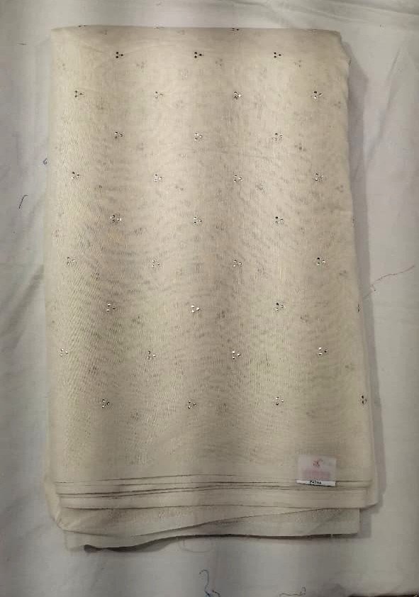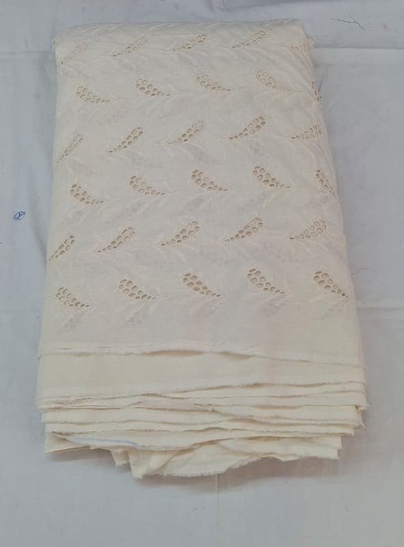Premium Off White Mul Cotton Work Fabric Soft Lightweight Embroidered Dress Material