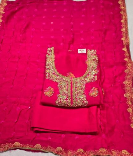 Premium Dola Silk Gota Patti Suit Set with Dola Silk Dupatta & Tapeta Bottom | Elegant Festive & Wedding Wear Unstitched Suit