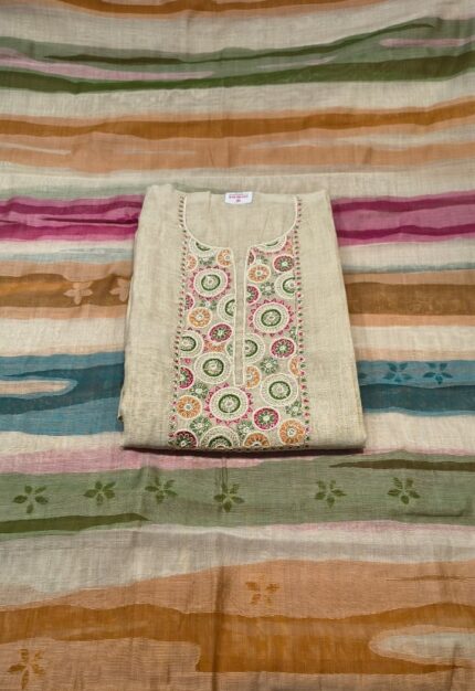 Premium Garhwal Cotton Unstitched Suit Set with Moti Work Top, Multicolor Zari Work Dupatta and Tapeta Bottom Elegant Ethnic Wear