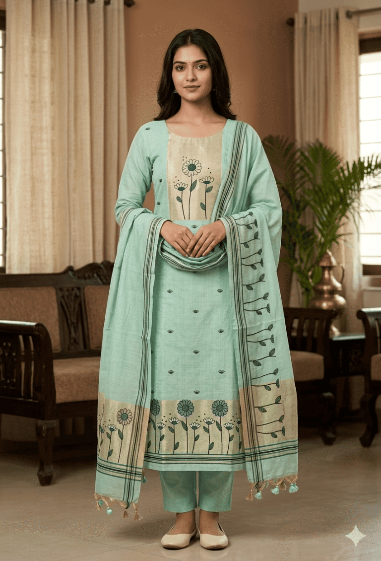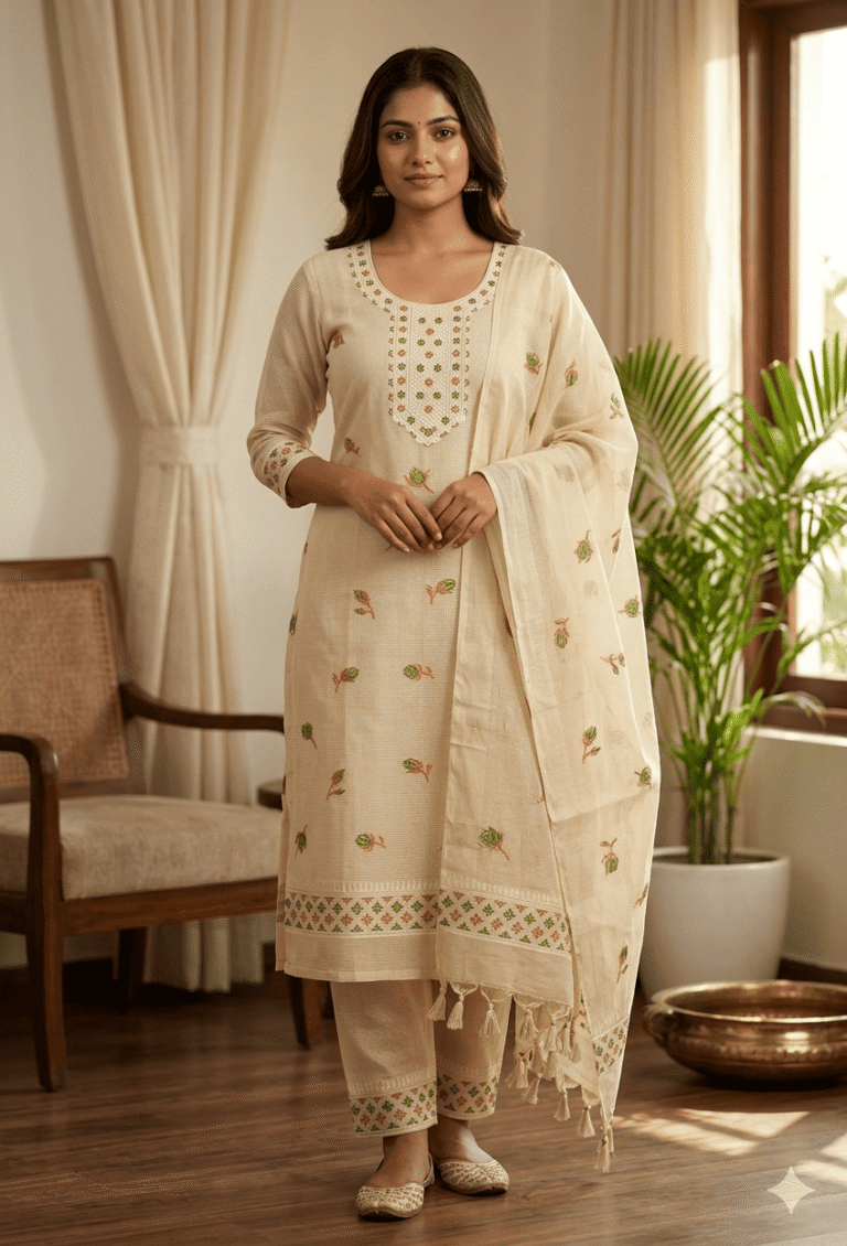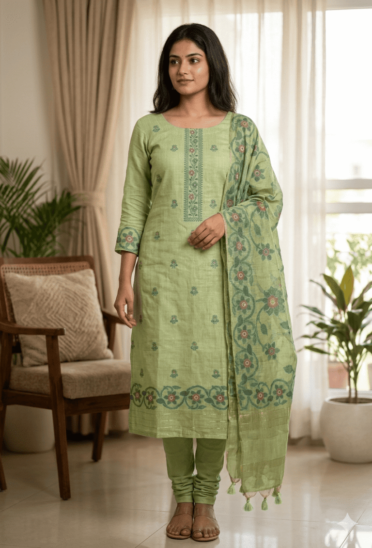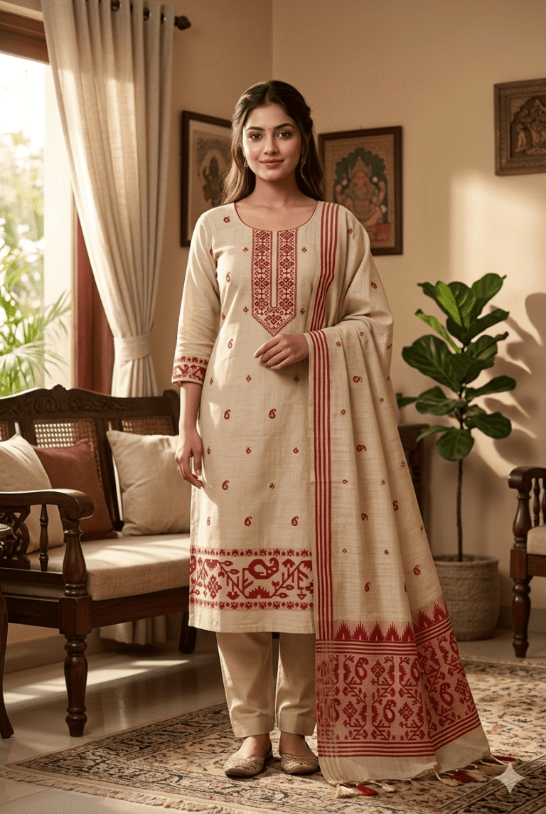 Elegant Jamdani Cotton Suit with Dupatta & Cotton Bottom – Premium 3 Piece Set