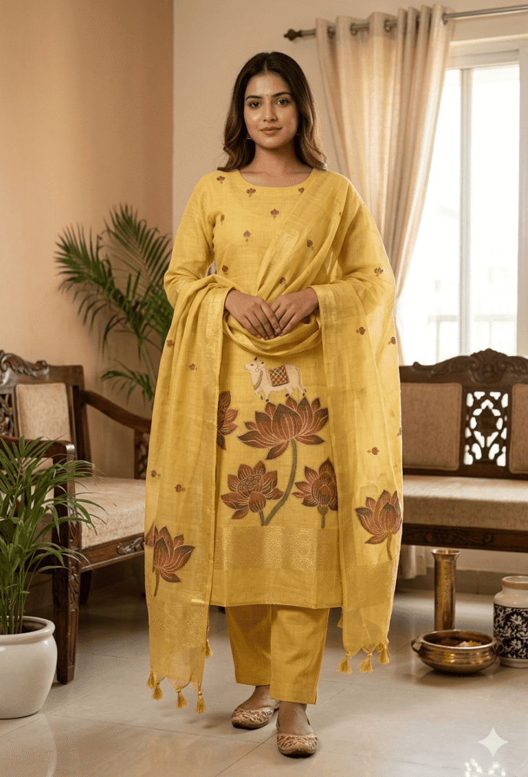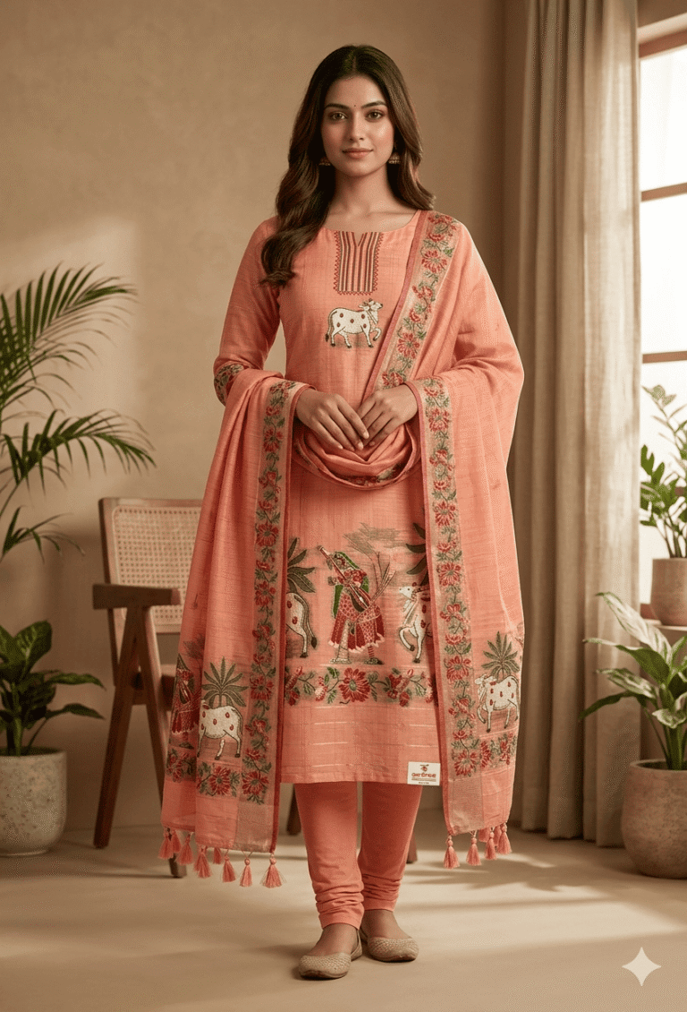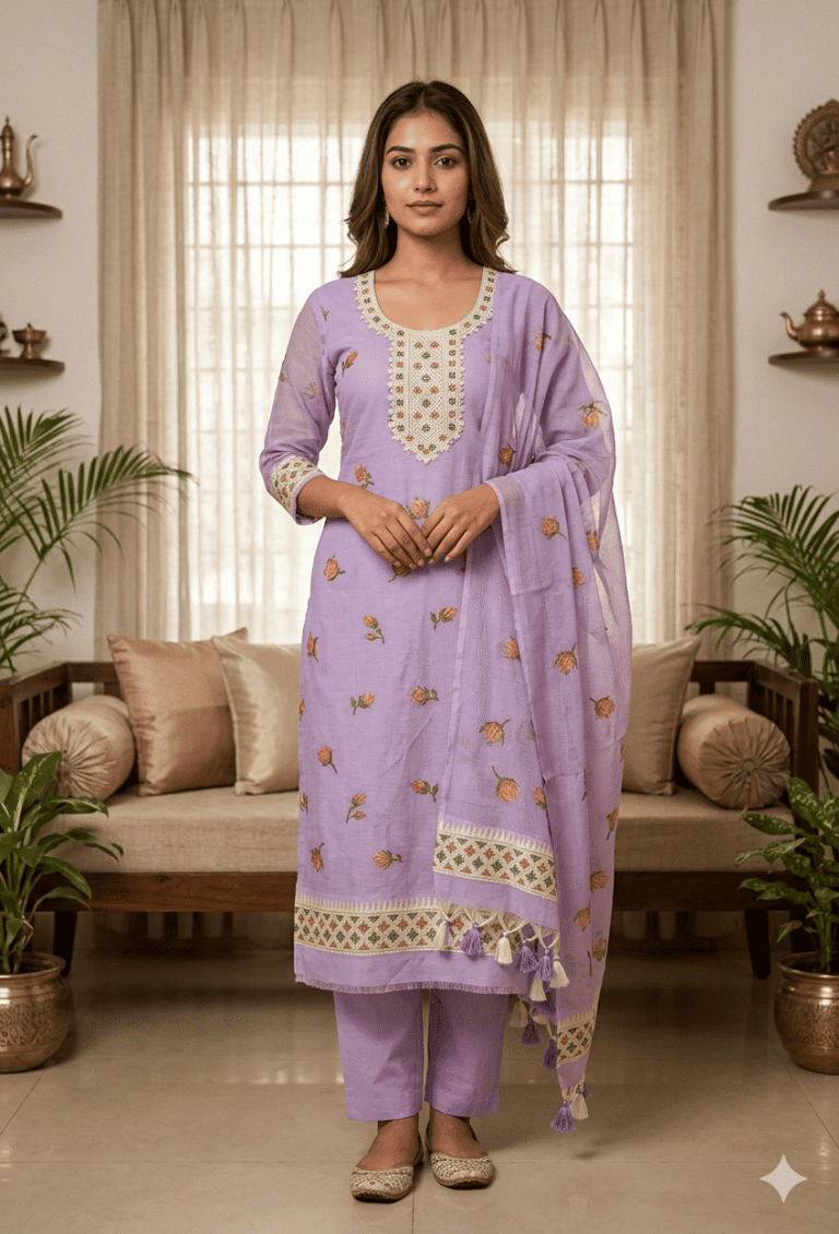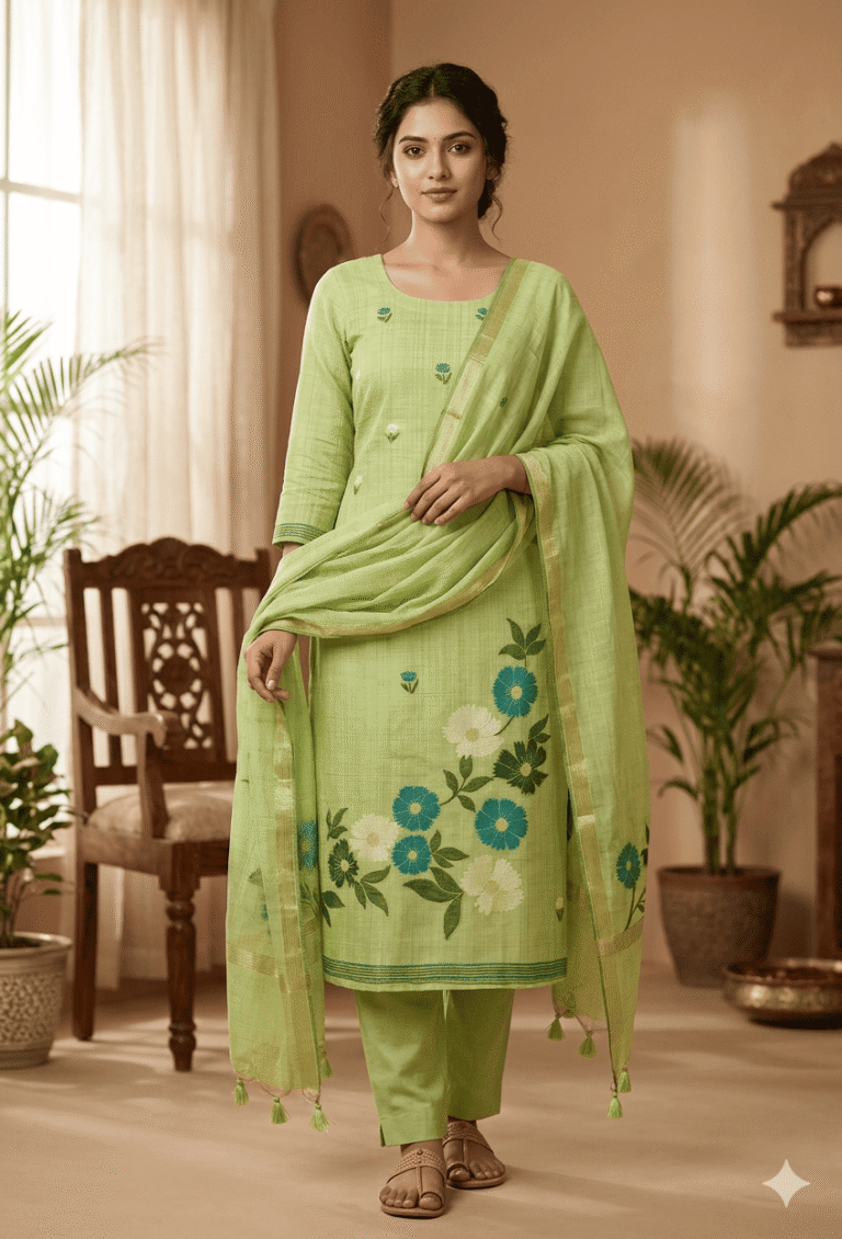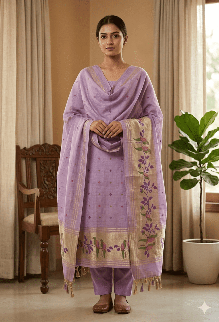 Elegant Jamdani Cotton Suit with Dupatta & Cotton Bottom – Premium 3 Piece Set