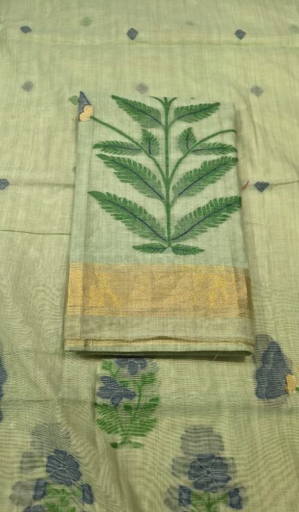 Premium Jamdani Cotton Unstitched Suit Set with Woven Jamdani Cotton Top and Matching Jamdani Cotton Dupatta Elegant Ethnic Wear