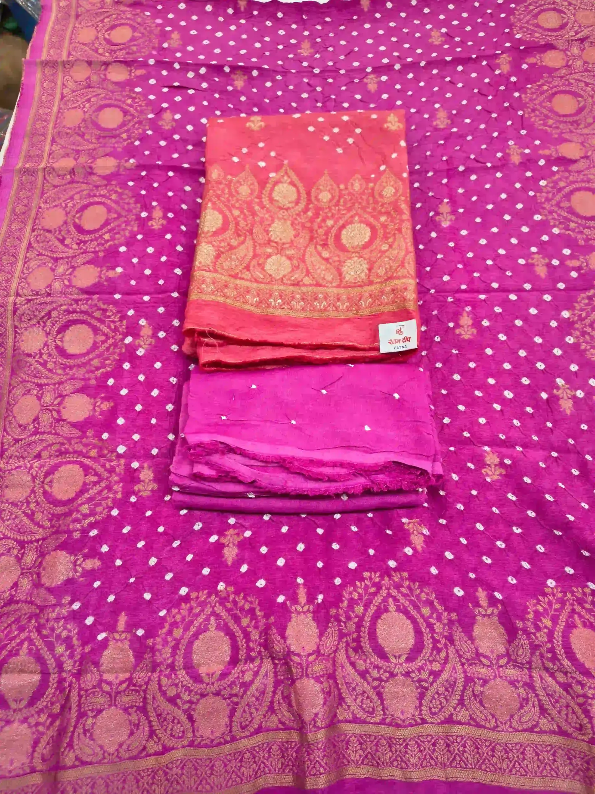 - Kurta Fabric: Dola Silk (Bandhani Design)