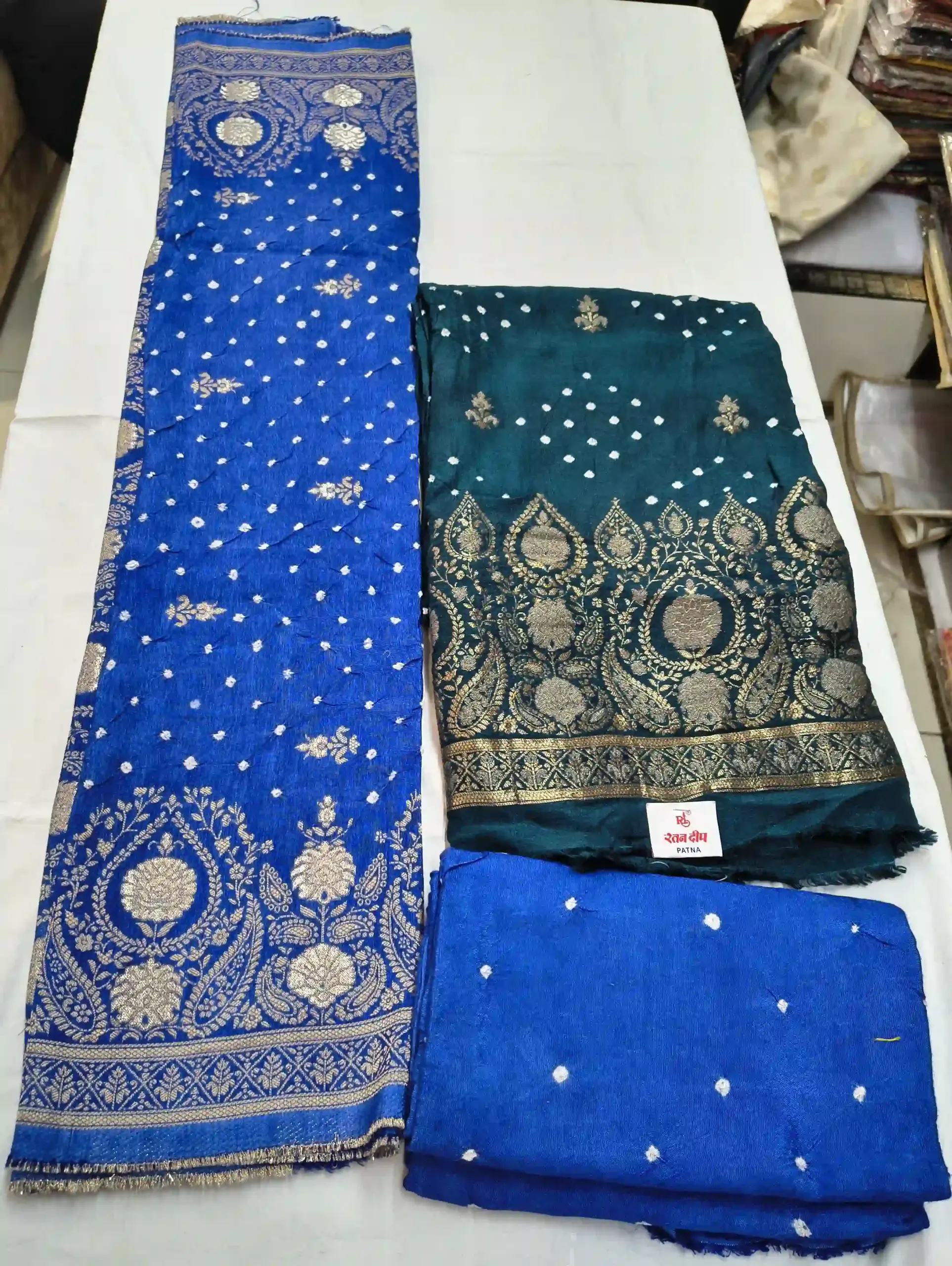 Traditional bandhani design with elegant zari weaving