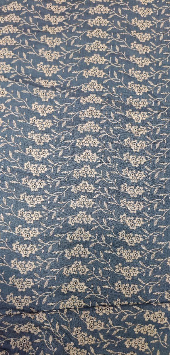 This Blue Denim Cotton Work Fabric is a perfect blend of comfort and style. Crafted from soft denim cotton, the fabric features elegant white floral embroidery work spread beautifully across the surface, giving it a classy and trendy appearance.
