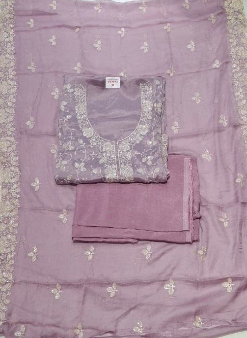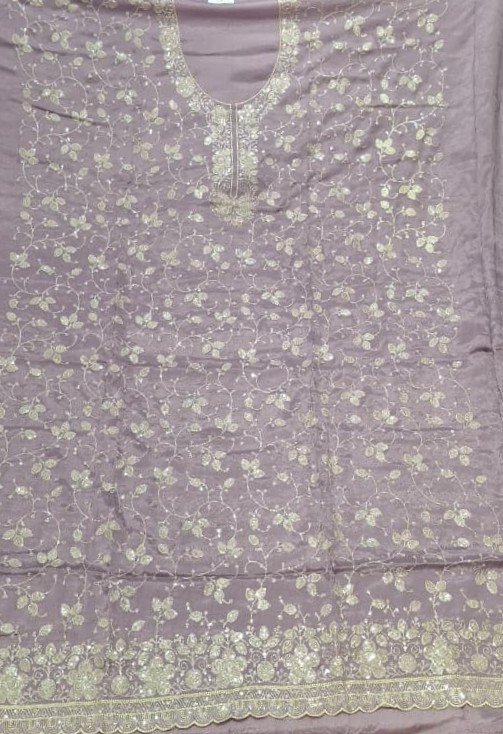 Paired with a matching bottom fabric, this unstitched suit set is perfect for festive occasions, family gatherings, parties, and traditional functions. The soft pastel shade and detailed embroidery make it an elegant ethnic choice.