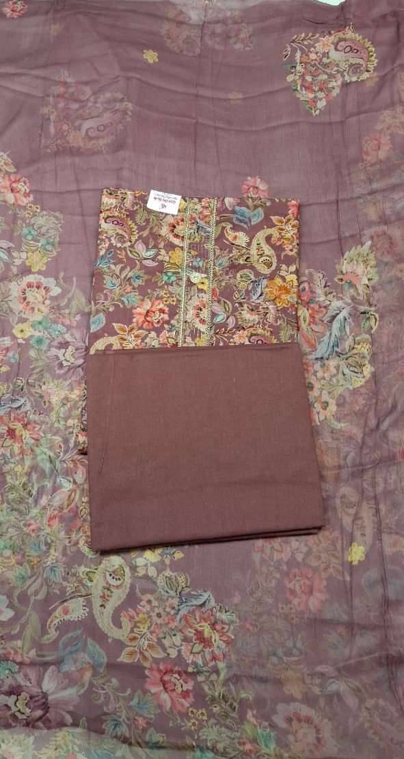 Cotton Printed Suit Set with Maslin Dupatta and Cotton Bottom Elegant Ethnic Wear