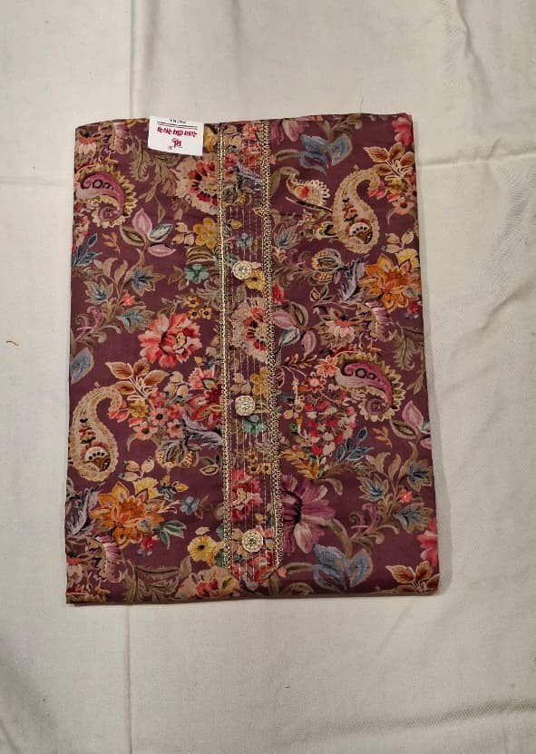 This Cotton Printed Suit Set is a beautiful blend of traditional prints and everyday comfort. The kurta is crafted from premium quality cotton fabric, featuring elegant floral and paisley prints that give it a classy ethnic appeal. Subtle decorative detailing on the front enhances its graceful look.