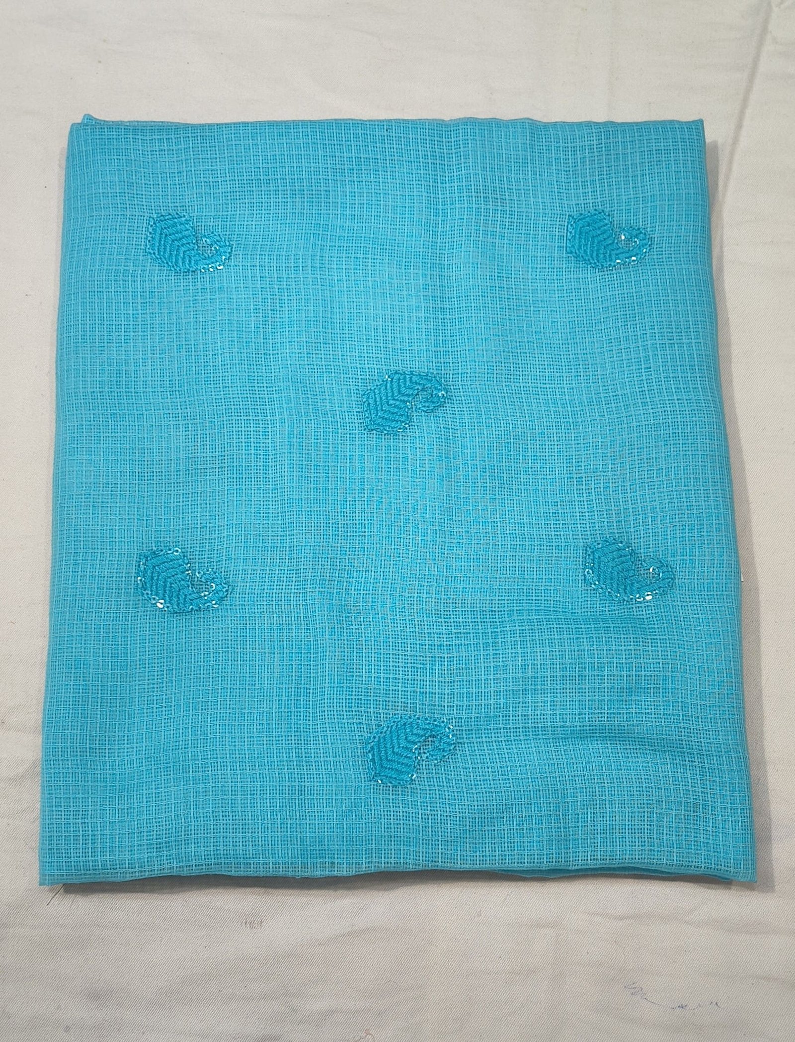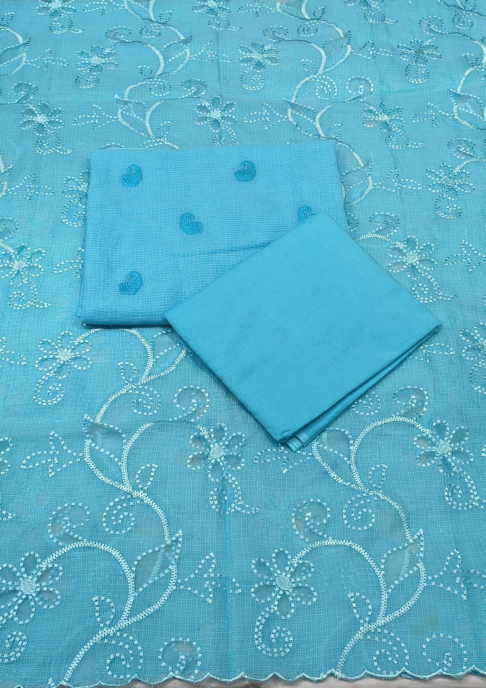 The dupatta comes with beautiful embroidery design and scalloped border, enhancing the overall look of the outfit. Paired with a soft cotton bottom, this set is ideal for stitching into a stylish suit as per your preference.