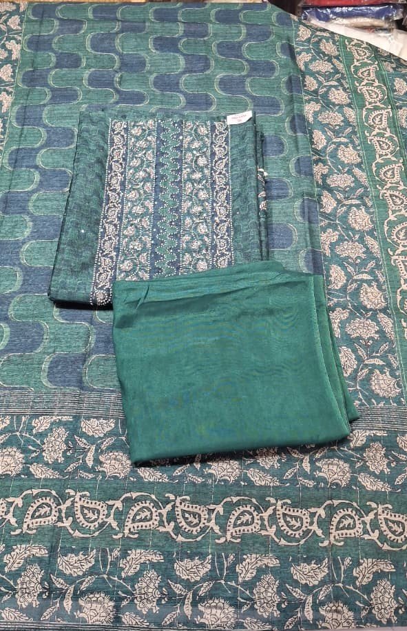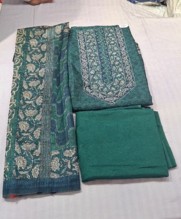 This Green Tissue Cotton Printed Suit Set offers a perfect balance of elegance, comfort, and traditional appeal. The kurta fabric is crafted from premium tissue cotton, featuring beautiful printed patterns that enhance its rich ethnic look while keeping it lightweight and breathable.