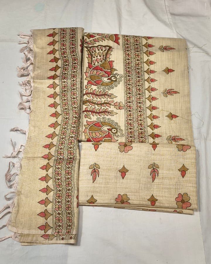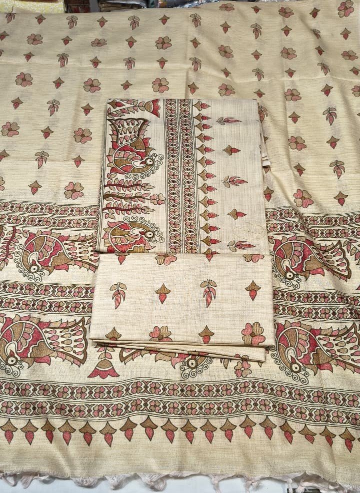 Ideal for festive occasions, cultural events, office ethnic days, pujas, and everyday traditional wear, this suit set offers a perfect blend of comfort, simplicity, and artistic elegance. The soothing natural color tone and detailed handloom prints make it a timeless addition to your ethnic wardrobe.