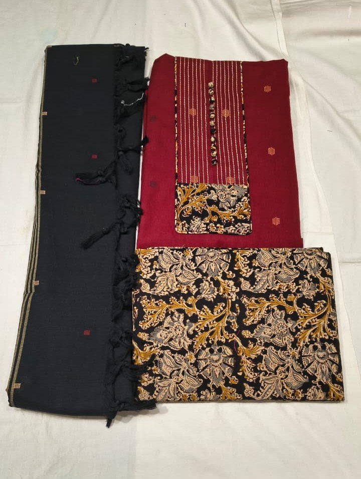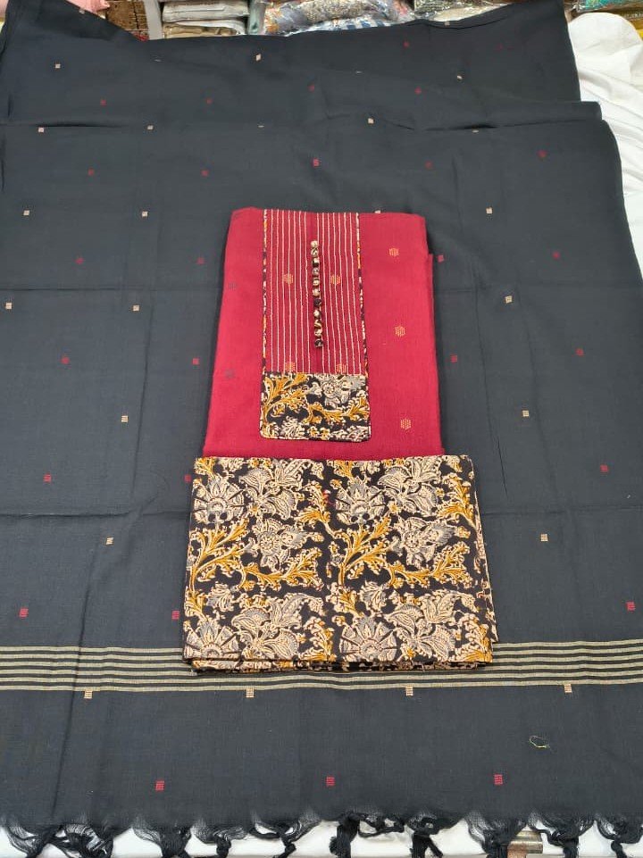This Handloom Cotton Suit with Dupatta is a beautiful combination of traditional handloom craftsmanship and everyday elegance. Made from breathable and skin-friendly handloom cotton fabric, the suit offers superior comfort while maintaining a refined ethnic appeal.