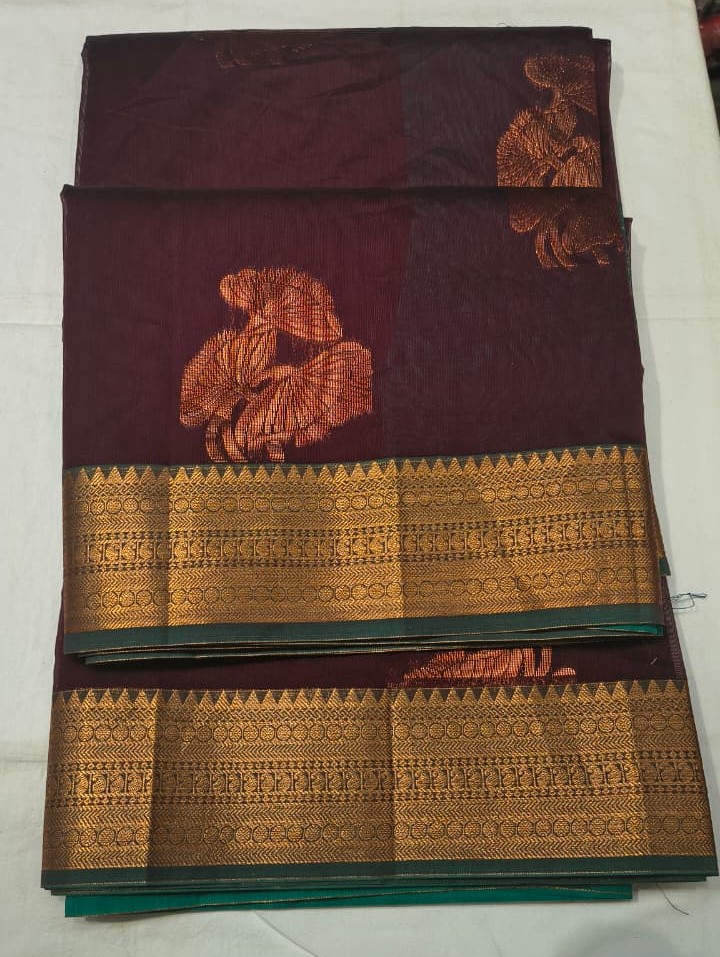 Add a touch of timeless elegance to your ethnic collection with this Kanjivaram Cotton Zari Work Saree. Crafted from premium quality cotton fabric, this saree features intricate zari weaving with traditional motifs and a rich zari border that enhances its royal appeal.