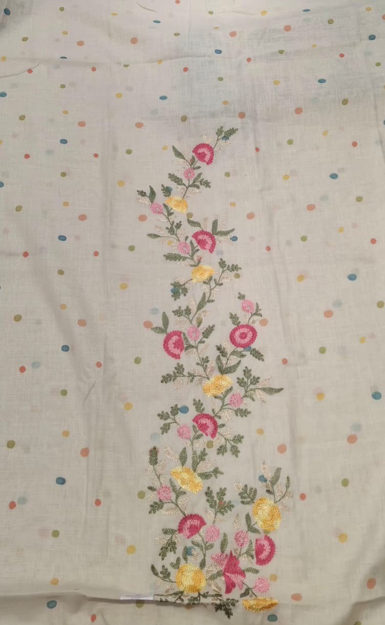 Pure All Cotton Suit Set with Printed Cotton Dupatta and Cotton Bottom Elegant Embroidered Unstitched Dress Material