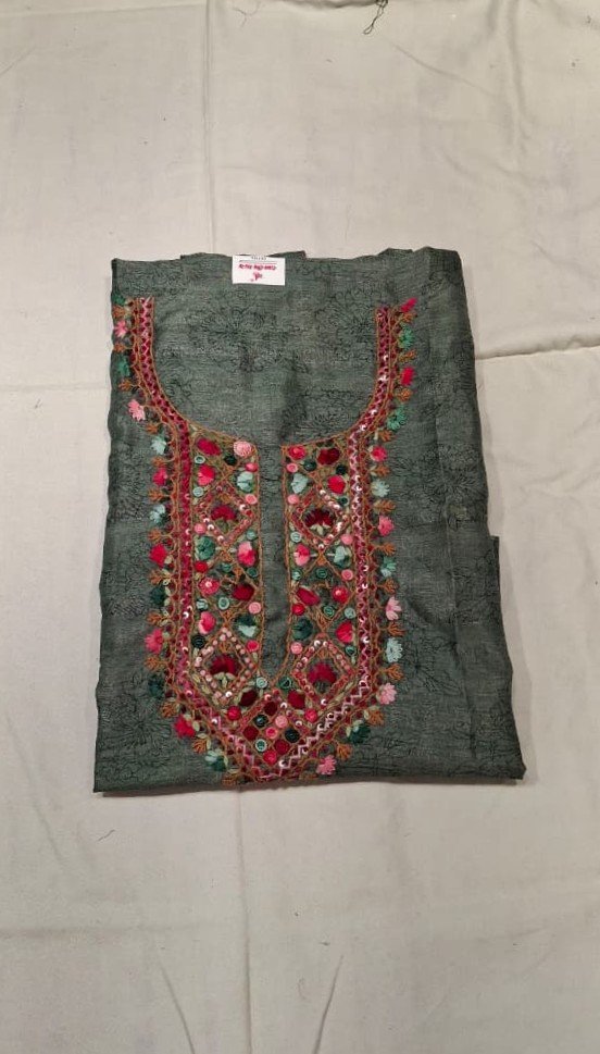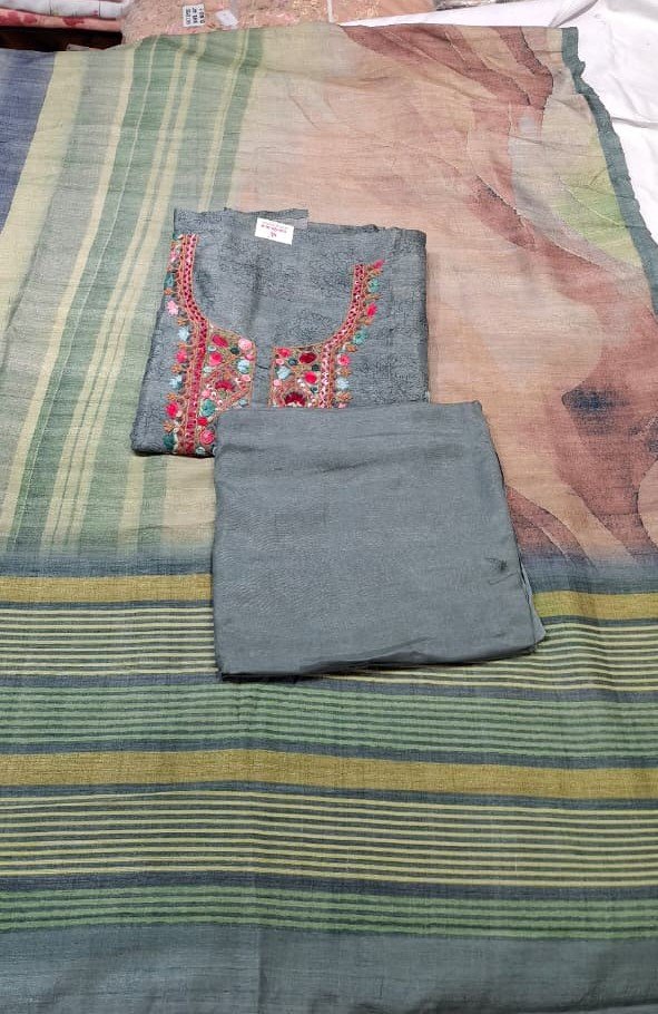 Be the first to review “Linen Cotton Work Suit Set with Linen Cotton Printed Dupatta and Tapeta Silk Bottom Elegant Ethnic Wear”