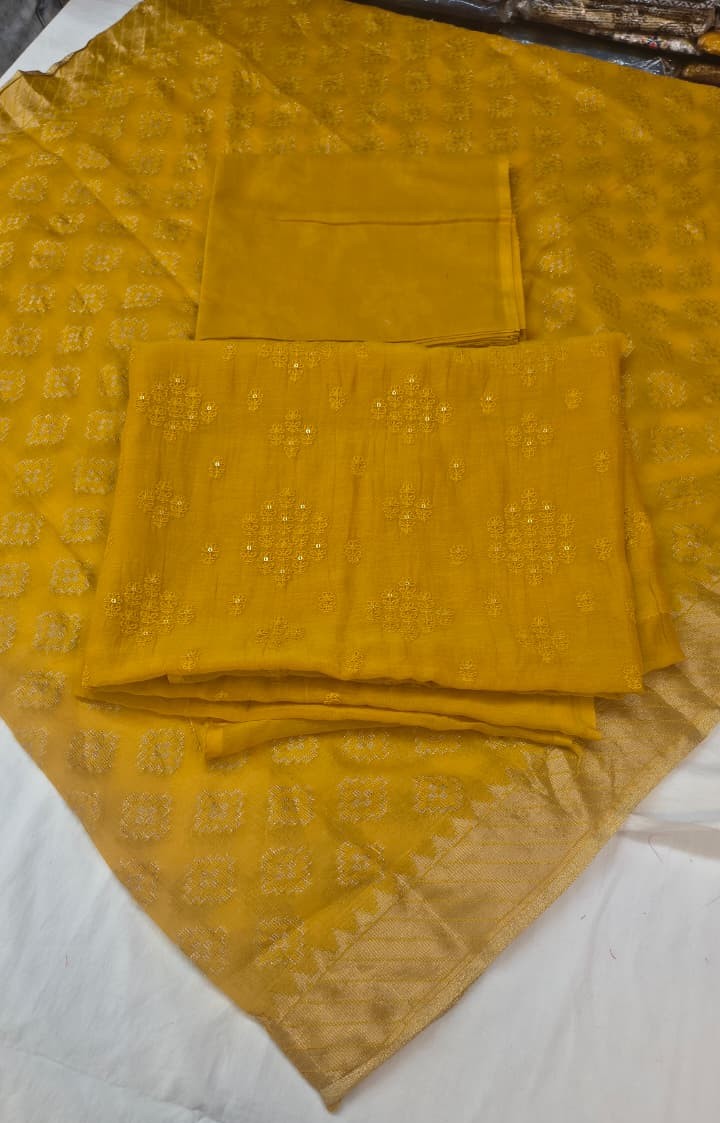 Malkha Silk Unstitched Suit Set for Women with Embroidery | Malkha Silk Kurta Fabric | Embroidered Malkha Silk Dupatta | Elegant Ethnic Wear