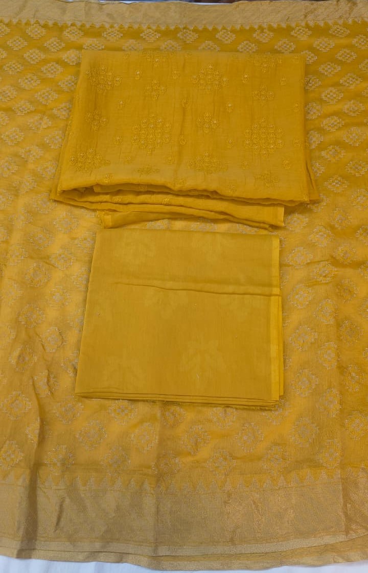 Add a touch of timeless elegance to your ethnic collection with this Malkha Silk Unstitched Suit Set. The kurta fabric is crafted from premium Malkha silk and enhanced with subtle embroidery, giving it a rich yet graceful appeal.