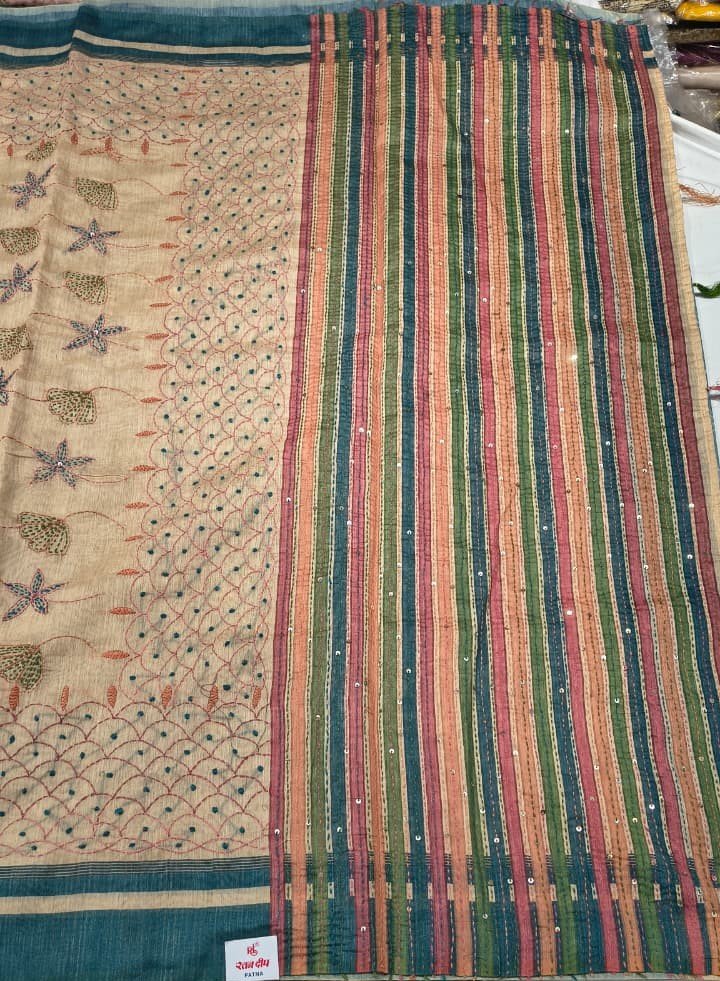 Perfect for casual outings, festive gatherings, office wear, cultural events, and day functions, this saree offers effortless elegance with a traditional touch. Its earthy tones and colorful embroidery make it a versatile addition to any ethnic wardrobe.