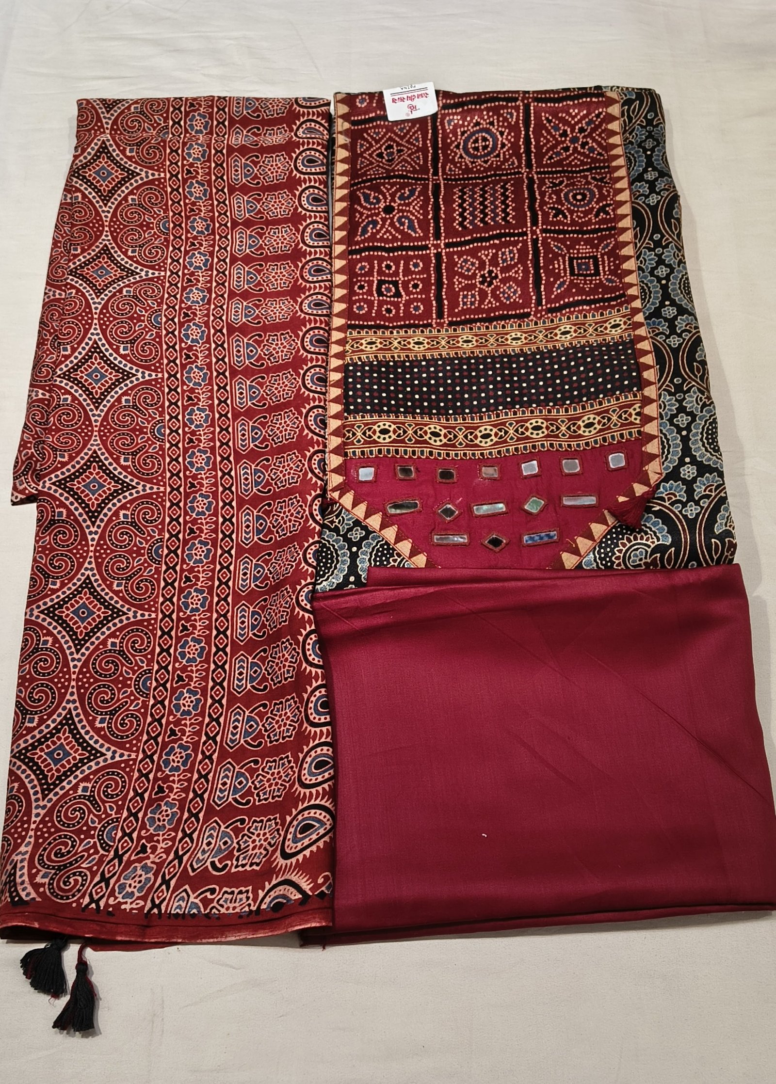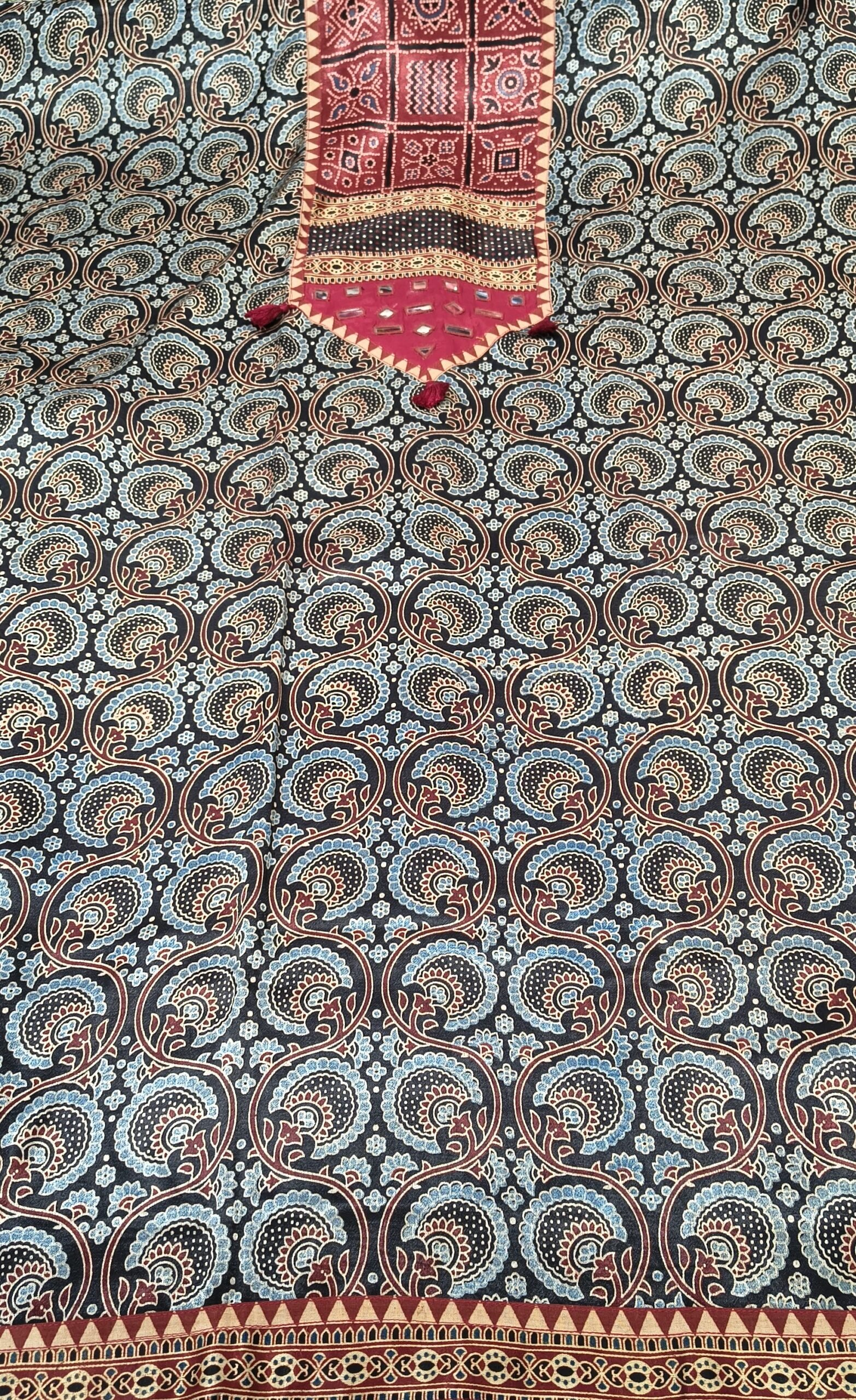 It comes with a matching mushroom silk dupatta with stylish border and tassel detailing, along with a comfortable cotton bottom for all day comfort.