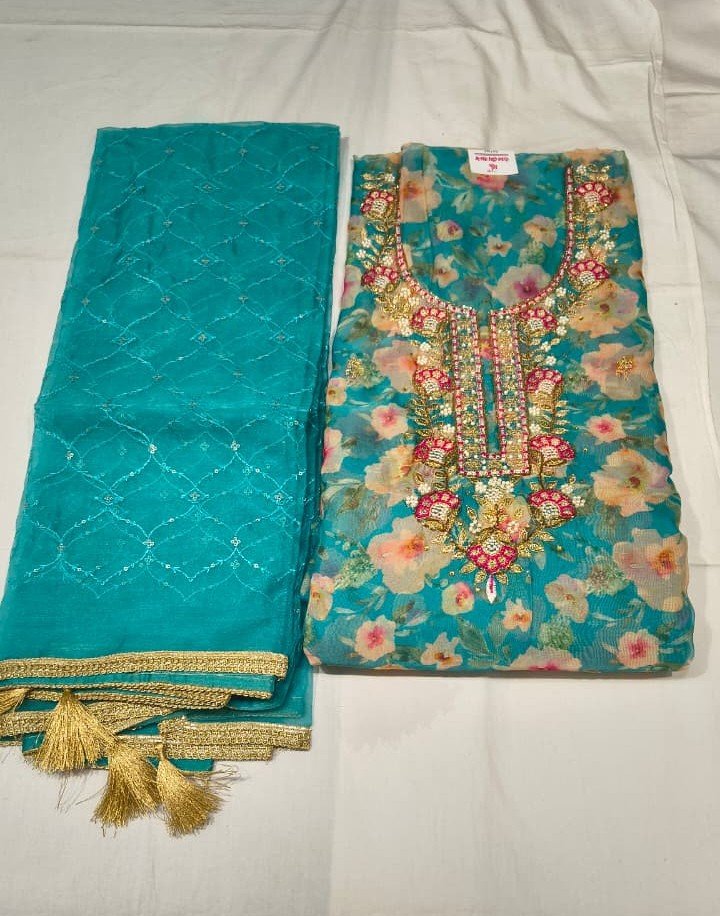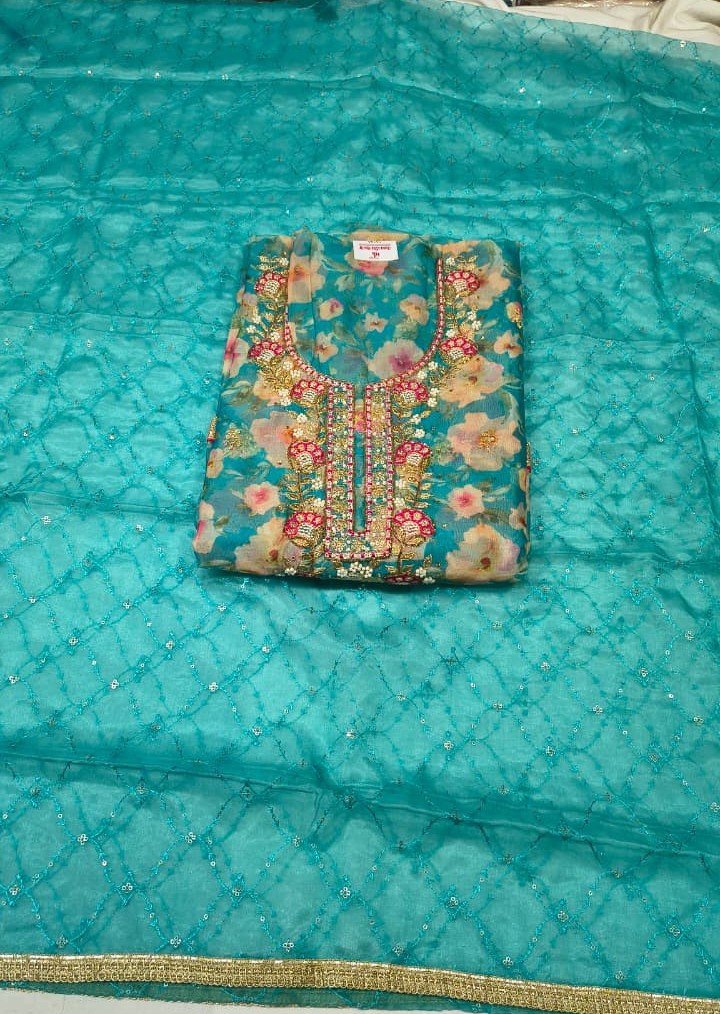 Be the first to review “Organza Galla Work Suit Set with Organza Dupatta and Tapeta Bottom Elegant Festive Ethnic Wear”
