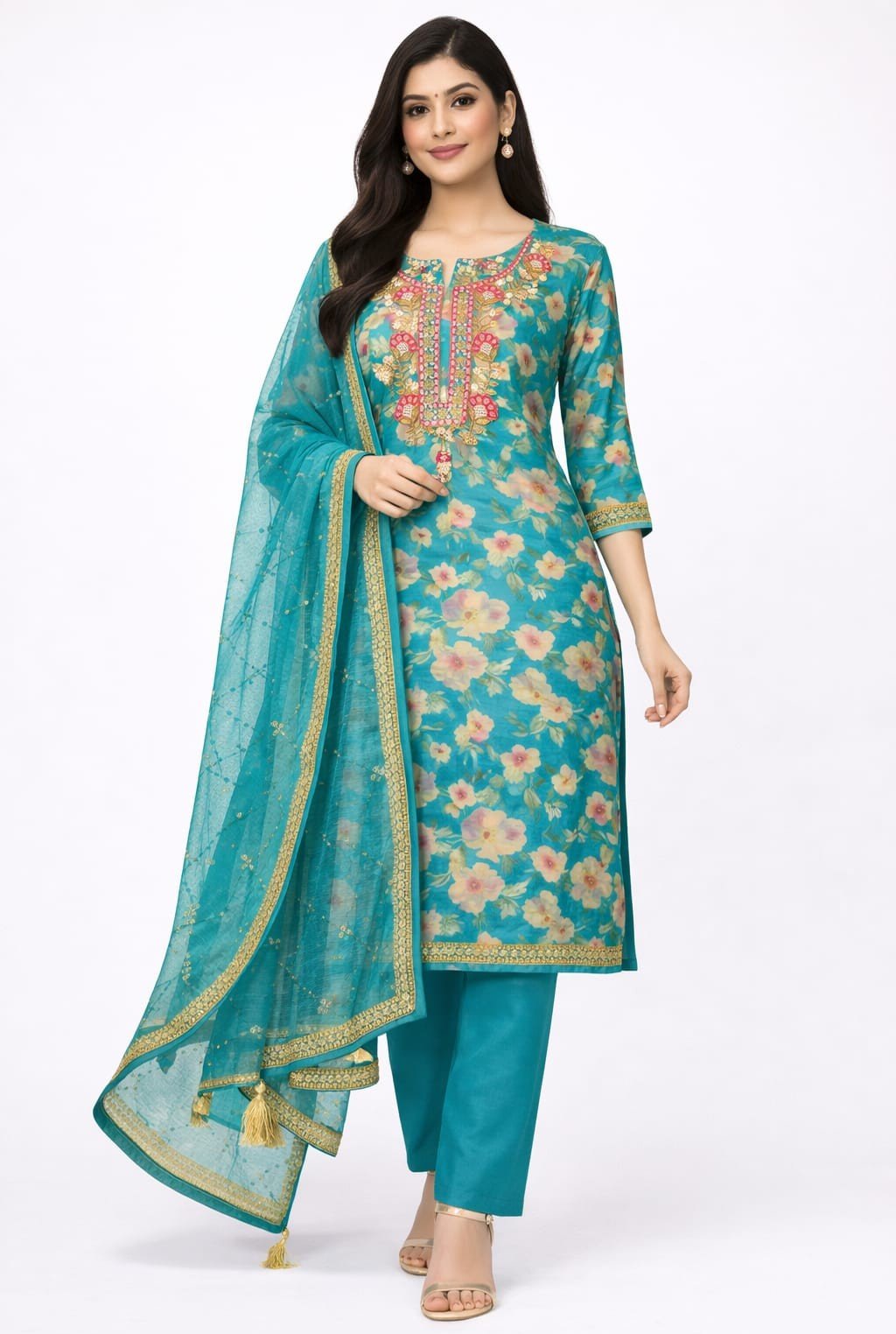 Some images used for presentation may include AI-generated model images. Actual product color, embroidery placement, fabric texture, and dupatta design may vary slightly. Please refer to real product images for accurate details.