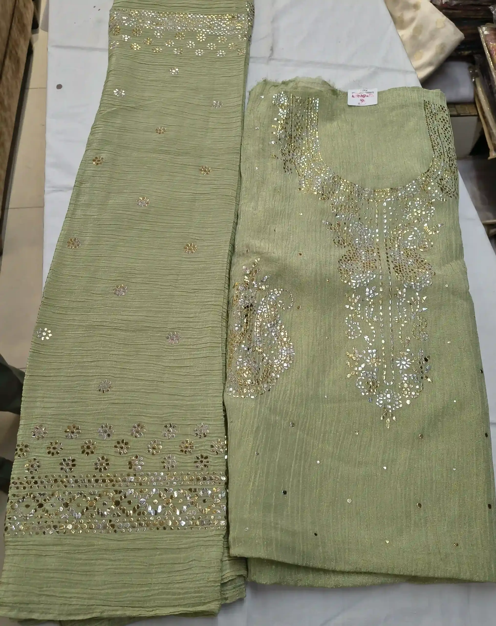1 Unstitched Suit Fabric (Tissue Silk with Pita Work)