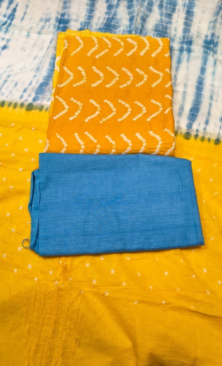 Premium Bandhani Cotton Unstitched Suit Set with Shibori Dye Dupatta and Plain Cotton Bottom | Elegant Ethnic Wear for Daily & Festive Use
