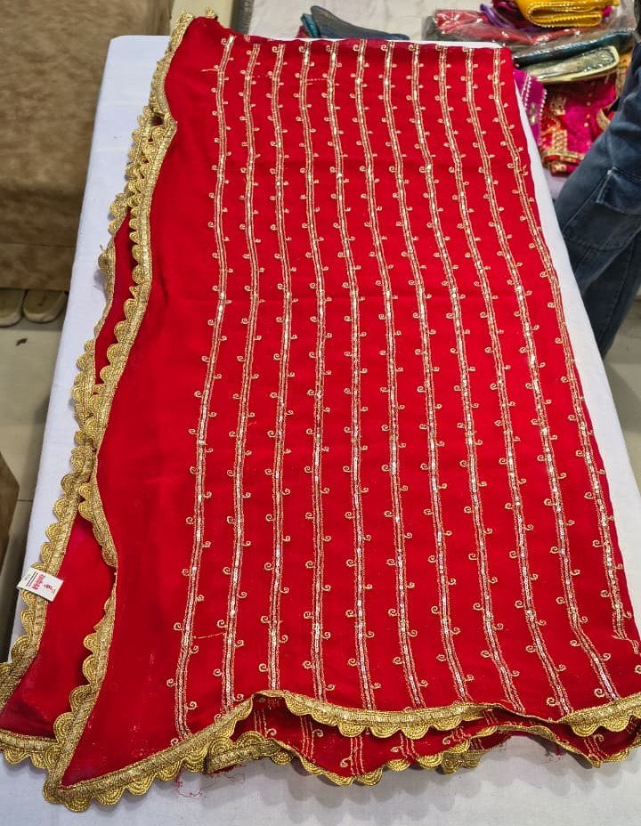 The vibrant red color combined with delicate sequence detailing makes it a perfect choice for festive wear, wedding functions, and party occasions. Its flowy drape and smooth texture ensure comfortable wear while enhancing the overall look of suits, lehengas, and ethnic sets.