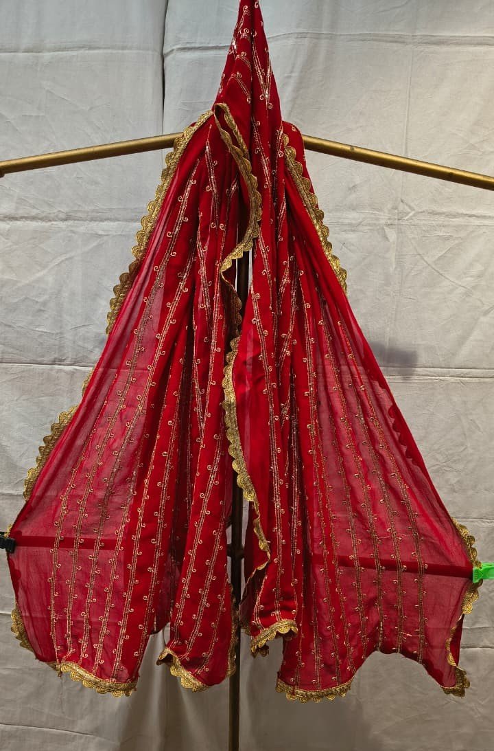 Premium Chiffon Sequence Work Dupatta | Elegant Red Embroidered Dupatta with Golden Border for Suit & Party Wear