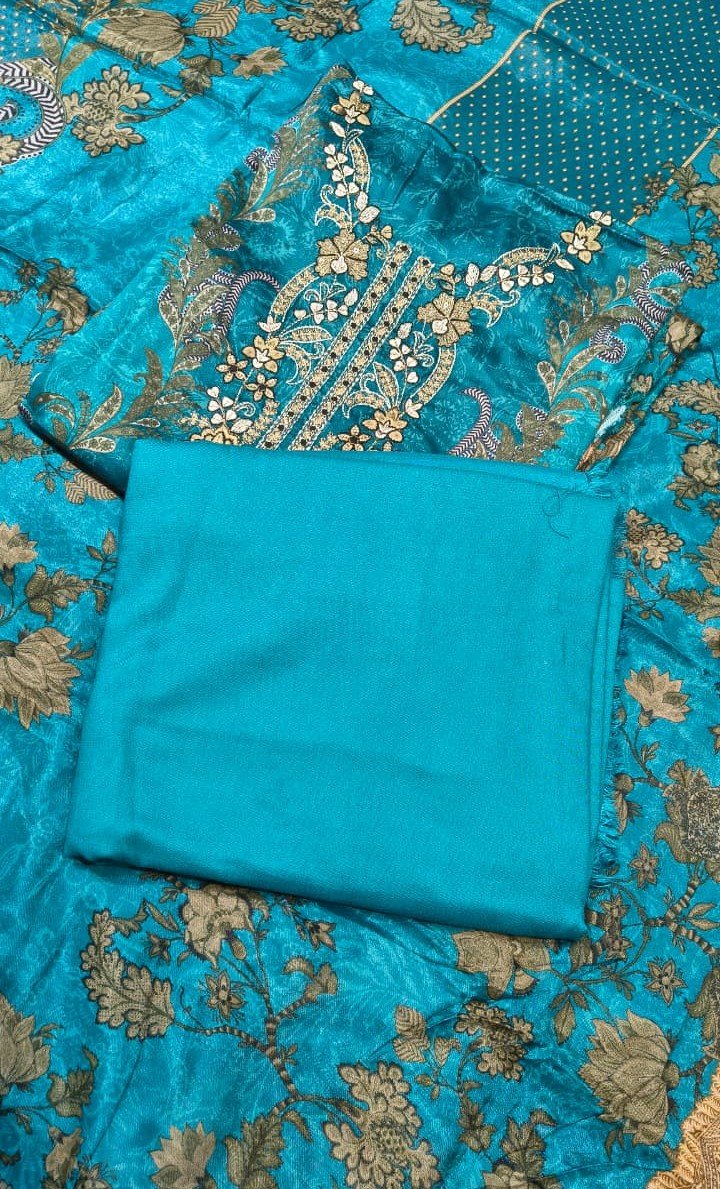 The Matching Cotton Dupatta complements the suit beautifully with coordinated prints and soft texture, adding charm and balance to the overall look. The Plain Cotton Bottom offers simplicity and comfort, allowing easy stitching and a neat finish that enhances the elegance of the ensemble.