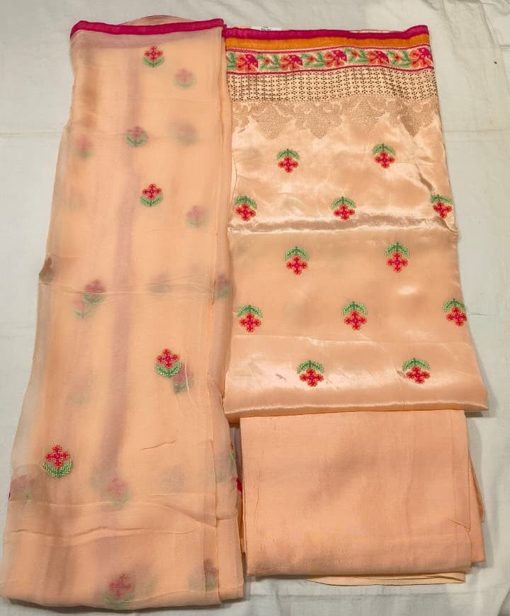 This unstitched suit set is ideal for festive occasions, family functions, traditional gatherings, parties, and elegant daytime events. Its soothing peach tone combined with fine embroidery makes it a timeless and versatile ethnic wear choice.