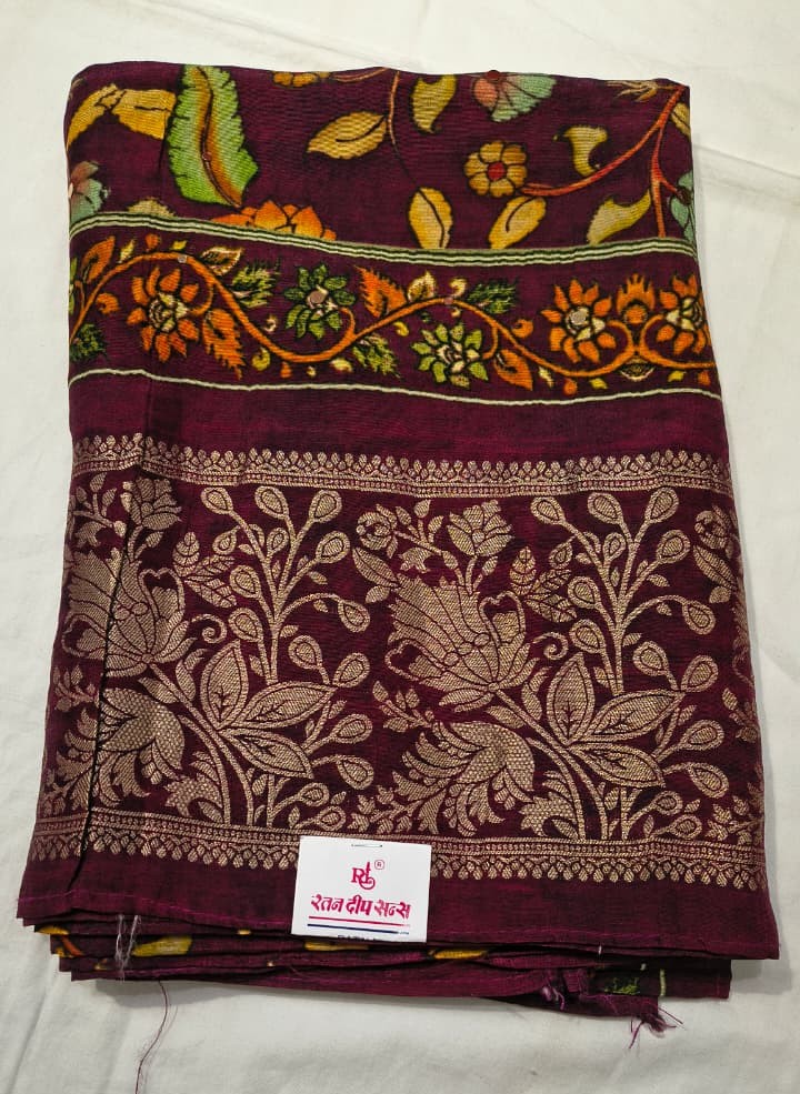 This Premium Dola Silk Pichwai Dupatta showcases beautiful traditional Pichwai-inspired floral prints with rich zari-style border detailing. Crafted on a deep wine-maroon base, the dupatta features vibrant multicolor floral and leaf motifs that reflect classic Indian artistry and heritage charm.