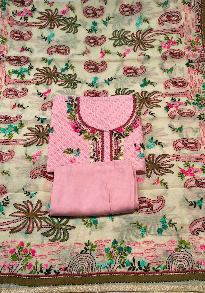 This unstitched suit set is ideal for festive occasions, pooja, family functions, office ethnic wear, and casual traditional outings. Its soothing base color combined with multicolor embroidery makes it a versatile and timeless choice for ethnic wardrobes.