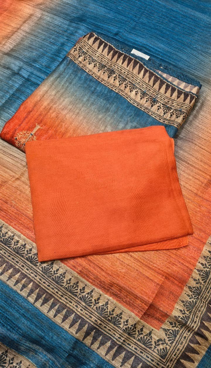 This Premium Ghicha Cotton Unstitched Suit Set is a perfect blend of traditional charm and modern elegance. The suit top is crafted from rich Ghicha Cotton fabric and features a beautiful gradient color effect with subtle ethnic motifs and border detailing that give it a classy and sophisticated look. The natural texture of Ghicha cotton adds depth, character, and comfort to the outfit.