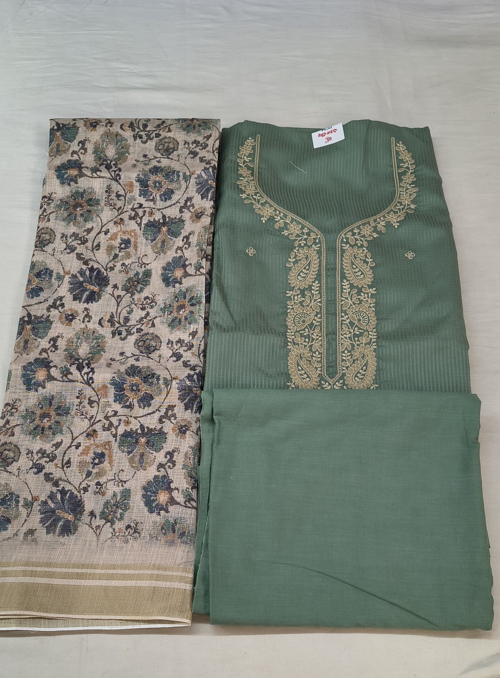 Pure All Cotton Suit Set with Printed Cotton Dupatta and Cotton Bottom Elegant Embroidered Unstitched Dress Material