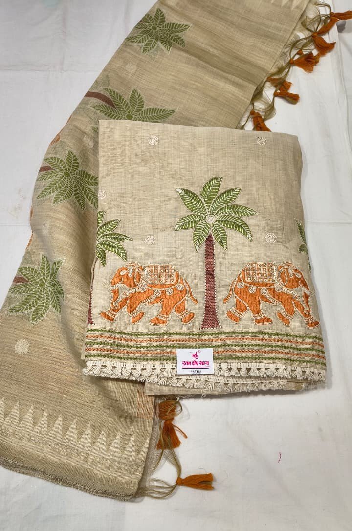 This Premium Jamdani Cotton Dhaga Work Suit with Dupatta is a graceful blend of traditional hand craftsmanship and everyday ethnic elegance. Crafted from fine quality Jamdani cotton fabric, the kurta features intricate Dhaga (thread) embroidery work inspired by nature motifs, showcasing delicate trees, leaves, birds, and deer patterns that add a refined artisanal charm.