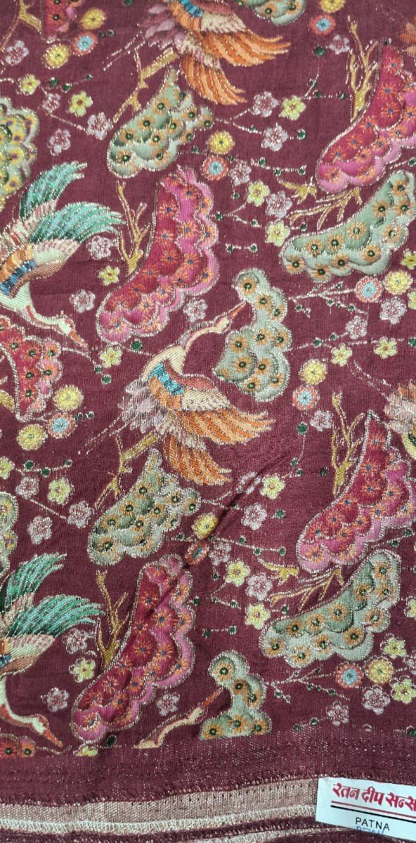 This Premium Kashmiri Karhai Work Fabric is a perfect blend of traditional craftsmanship and elegant design. The fabric features intricate bird and floral embroidery patterns, inspired by classic Kashmiri art, giving it a rich and luxurious ethnic appeal.