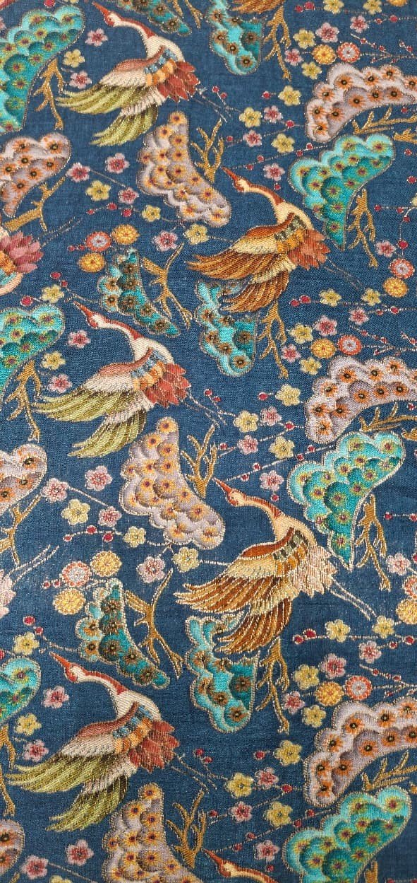 This Premium Kashmiri Karhai Work Fabric is a perfect blend of traditional craftsmanship and elegant design. The fabric features intricate bird and floral embroidery patterns, inspired by classic Kashmiri art, giving it a rich and luxurious ethnic appeal.
