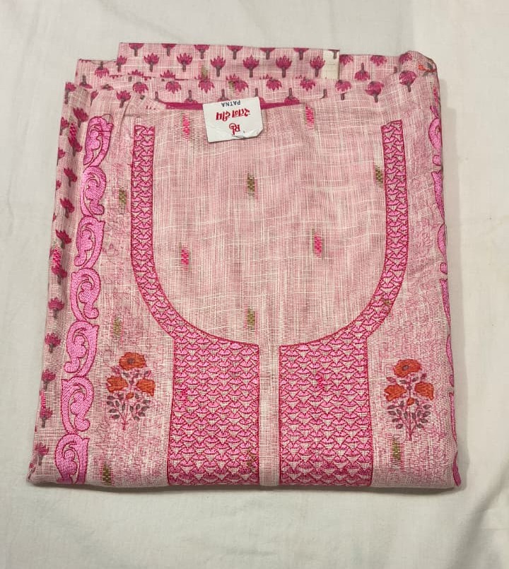 Premium Linen Cotton Unstitched Suit Set with Printed Chiffon Dupatta and Plain Cotton Bottom Elegant Ethnic Wear for Festive and Casual Use