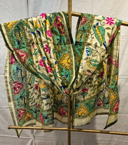 The lightweight yet structured texture of organza silk gives a classy drape, making it perfect for pairing with suits, kurtis, lehengas, and festive outfits. The rich golden tone and intricate detailing make it suitable for weddings, festivals, and special occasions.