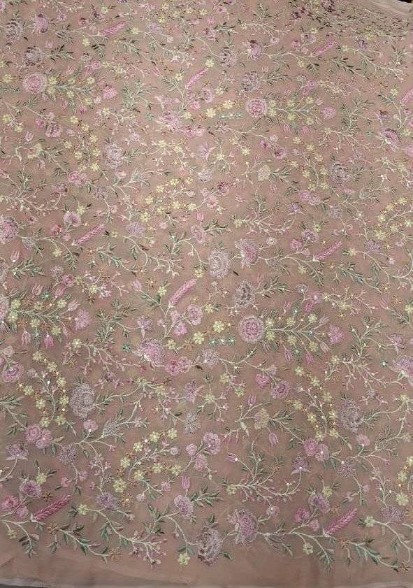 Whether you are designing a bridal outfit or a festive ensemble, this embroidered georgette fabric enhances your look with timeless charm and premium appeal.
