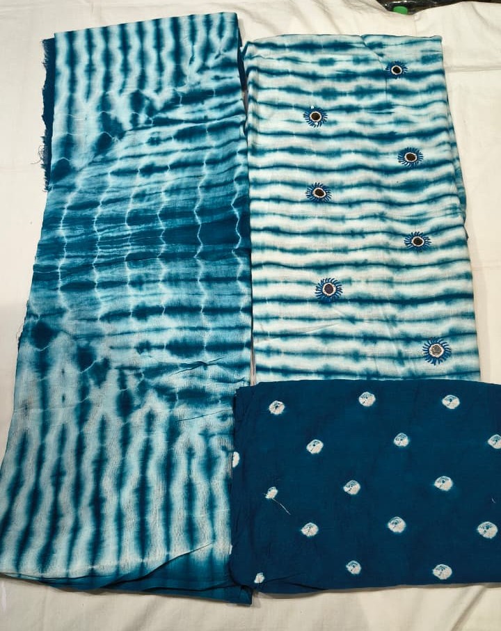 Premium Shibori Cotton Unstitched Suit Set with Shibori Cotton Dupatta and Bandhani Cotton Bottom Elegant Ethnic Wear for Festive and Casual Use