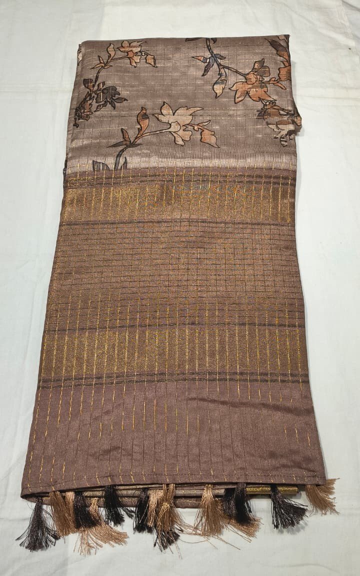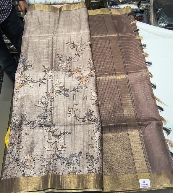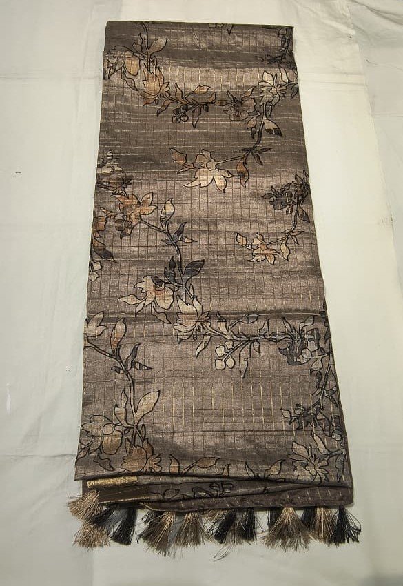 This Premium Tassar Cotton Printed Saree beautifully combines traditional artistry with everyday elegance. Crafted from rich Tassar cotton fabric, the saree features delicate floral prints spread across the body, creating a graceful and timeless ethnic appeal. The natural texture of Tassar cotton gives the saree a soft sheen, breathable comfort, and a premium handcrafted feel.